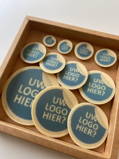 Chocoschildjes zijn een veelgevraagd product van (zakelijke) klanten, waarbij het logo, tekst of foto op witte ronde chocolaatjes wordt gemaakt. We gebruiken hiervoor uitsluitend duurzame chocolade van de beste kwaliteit : Callebaut. Deze fijne Belgische chocolade geeft een perfecte smaak, en wordt bereid met 100% duurzame cacaoboter.